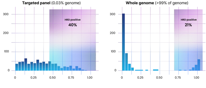 CancerVision’s whole-genome method enables clearer distinction between HRD-positive and HRD-negative, avoiding the ambiguity of targeted panel results.2 Genome-wide marker analysis (including HRD) is not an add-on but a part of CancerVision analysis, at no additional cost.